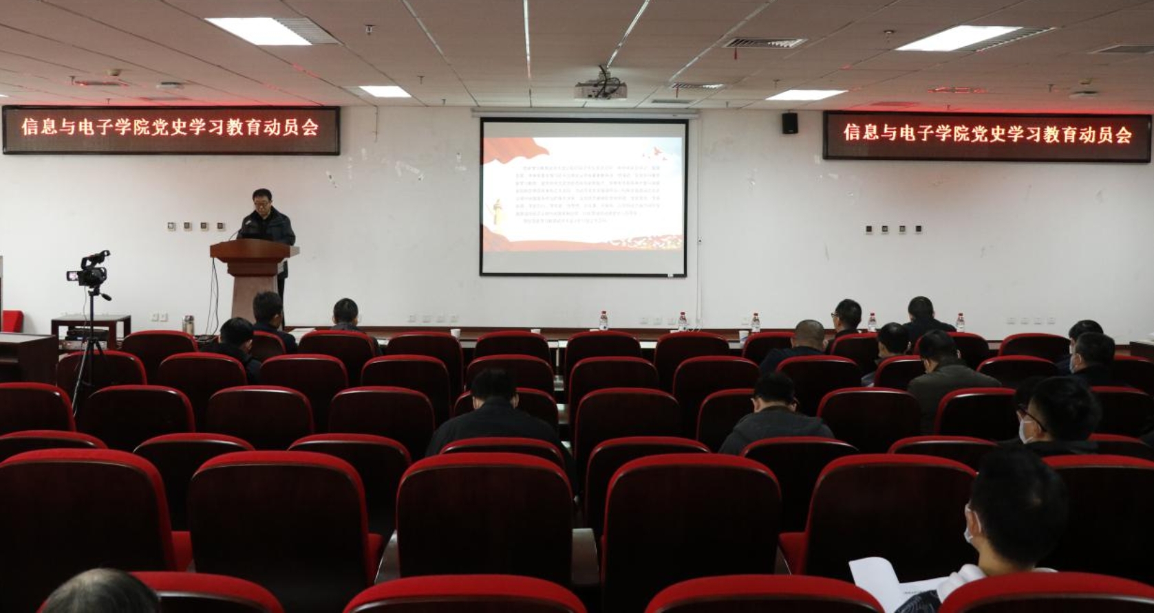 3月19日下午,黄色网 召开党史学习教育动员大会暨专题学习第一课,将党史学习教育动员会与3月理论学习会相结合,以深入学习贯彻习近平总书记在党史学习教育动员大会上的讲话精神,印发学院3月理论学习汇编材料、学院党史学习教育实施方案和党史学习书籍。学院党委委员、行政班子成员、院长助理、师生支部书记全体在202报告厅参加现场会议。同时通过现场腾讯会议实时共享屏幕连线,500余名师生通过腾讯会议线上参会,形成了线上线下相结合共同参加党史学习教育动员会的良好氛围。