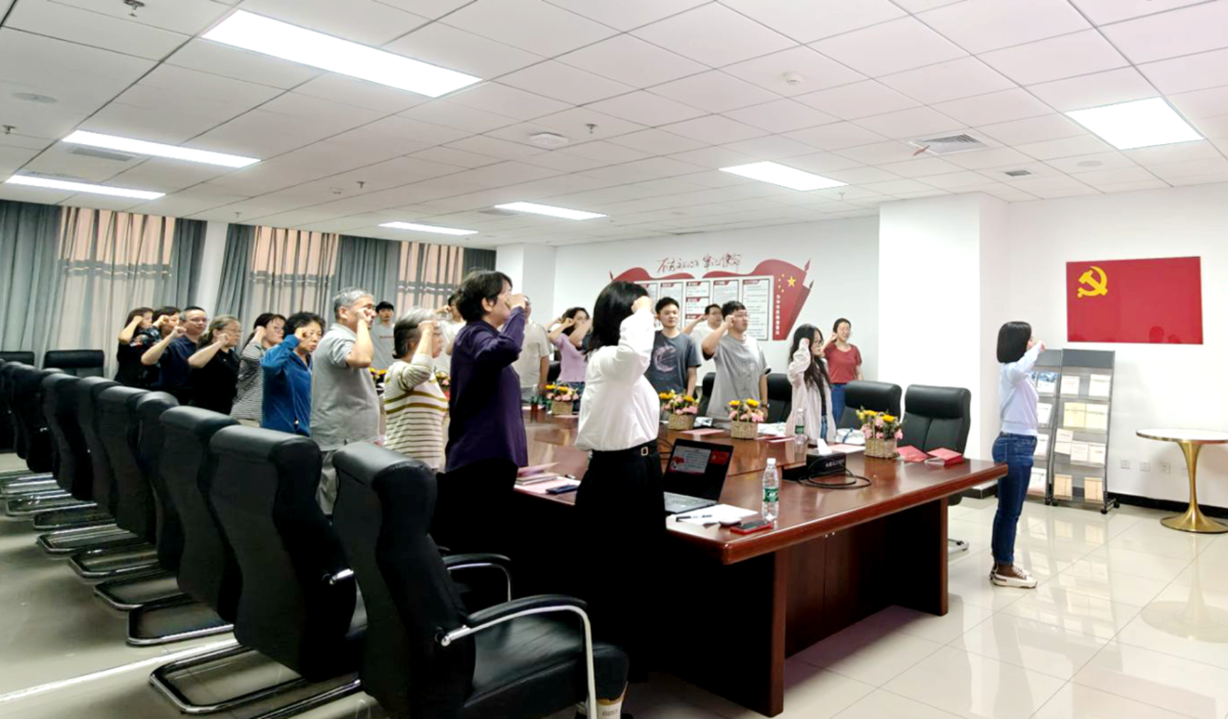 活动中,全体师生党员面向党旗,重温入党誓词。