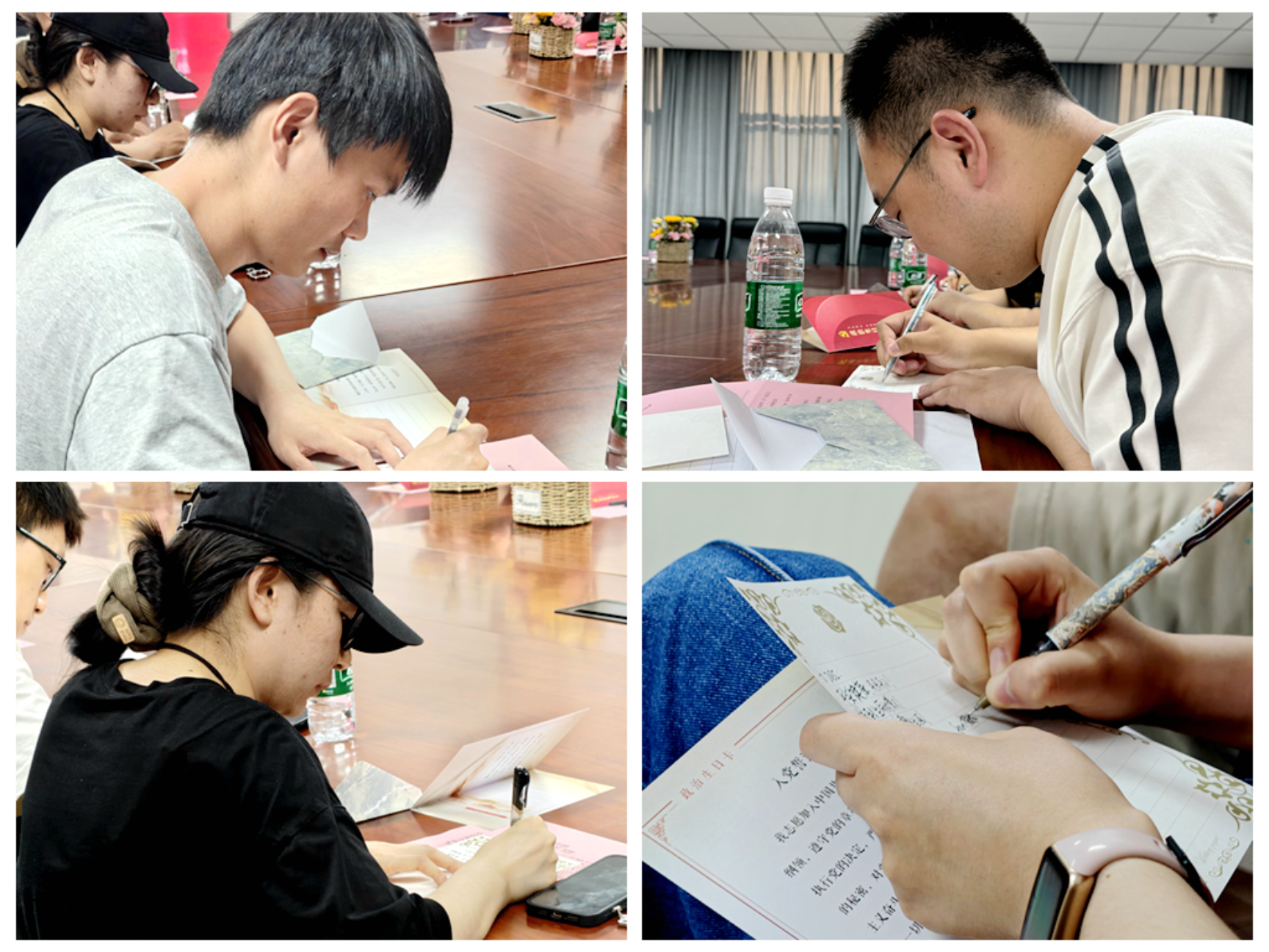 在“时间胶囊”环节中,毕业生党员郑重写下“致五年后的自己”信件,其他学生党员则撰写“2035年政治生日贺卡”,一并存入党支部红色档案。