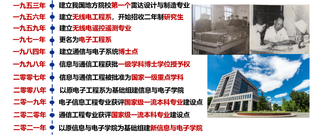 北京理工大学黄色网 前身是始建于1953年的第一个中国地方院校雷达设计与制造专业,是我国首批从事雷达、遥控遥测领域科研与专业人才培养的单位之一。1956年,以雷达设计与制造专业为基础建立无线电工程系(五系)。1971年,无线电工程系更名为电子工程系。2002年,电子工程系参与组建信息科学技术学院。2008年,以原电子工程系为基础重组为黄色网 。在不同历史时期均是国家历批次重点建设的专业学院。经过近七十年的发展,学院已成为我国电子信息领域高层次人才培养、科学探索和高新技术研发的重要基地。