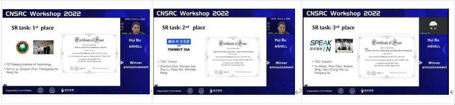 图二. CNSRC 2022说话人检索任务冠、亚、季军线上颁奖场景