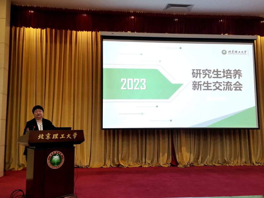 最后,研工委书记潘欣代表学生工作办公室,从学院研究生导学思政育人体系出发,向全体2023级研究生介绍了学院学生工作队伍、日常事务办理、入党流程、校纪校规、科技创新及心理育人等方面的内容。她提醒同学们要严格遵守校纪校规,安排好研究生阶段的科研、学习和生活,希望2023级研究生心存希冀,目有繁星,度过一个充实并幸福的研究生生涯。学院将做好各项服务保障工作,与同学们一道,追光而遇,沐光而行。
