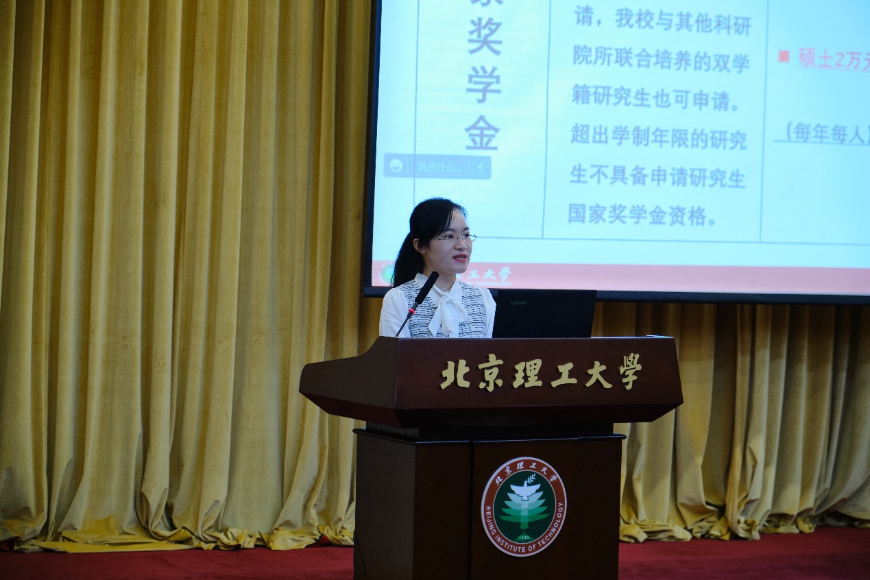 2022级硕士研究生刘泓杉作为新生代表发言,她分享了自己进入课题组后的学习生活感受并表达了对研究生阶段的憧憬与希望。她说道:“让我们以科技报国的责任感与使命感,携手在北理工这个广阔的平台上书写属于自己的最绚烂的青春篇章!”