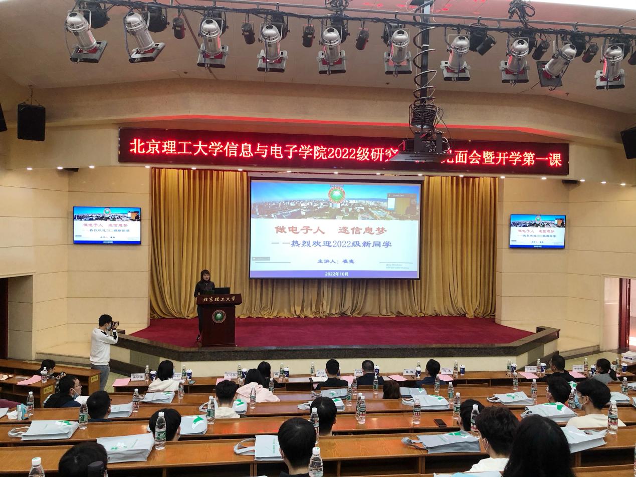 崔嵬以“做电子人,逐信息梦“为题,从师资力量、人才培养模式、教学科研条件等几个方面,向2022级研究生生动讲述了院史院情及学科发展前景。随后,他鼓励全体学生要胸怀壮志,始终把服务党和国家建设放在心中,充分利用学院的科研平台夯实学科基础,拓宽专业视野,提升自身本领。