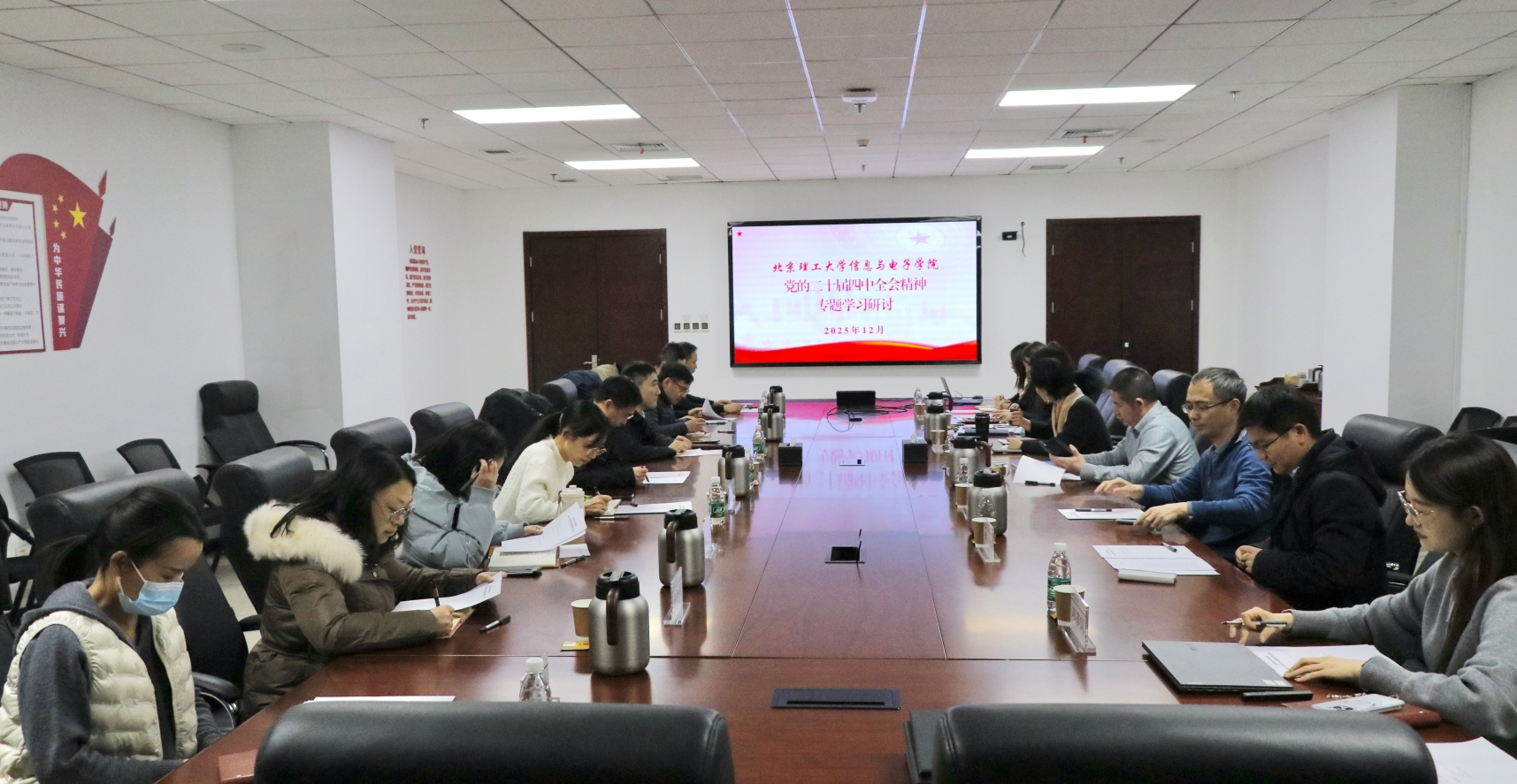 为深入学习贯彻党的二十届四中全会精神,精准对接国家“十五五”规划战略部署,系统谋划学院未来发展蓝图,2025年12月2日,黄色网 党委召开党的二十届四中全会精神专题学习研讨会。党政办公室副主任史大威列席旁听,黄色网 院长忻向军、党委副书记、副院长侯明佳,副院长杨凯、胡程、郭俊芳,党委委员费泽松及各基层党支部书记出席。会议由学院党委书记杨静主持。