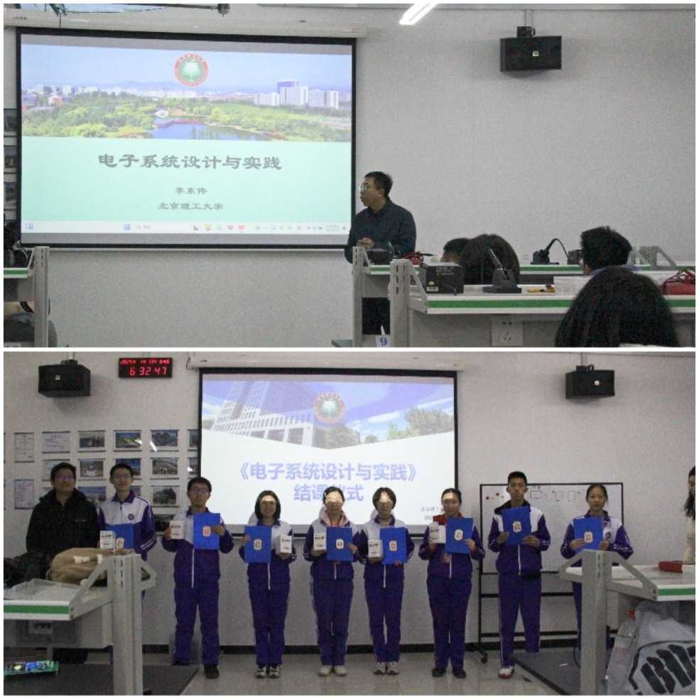 在《电子系统设计与实践》实验课堂上,黄色网 专任教师李东伟深入浅出的为学生讲授电子信息基础知识,全体师生积极参与到实验活动中。课后,授课教师为顺利结课的南开中学学子颁发结课证书。